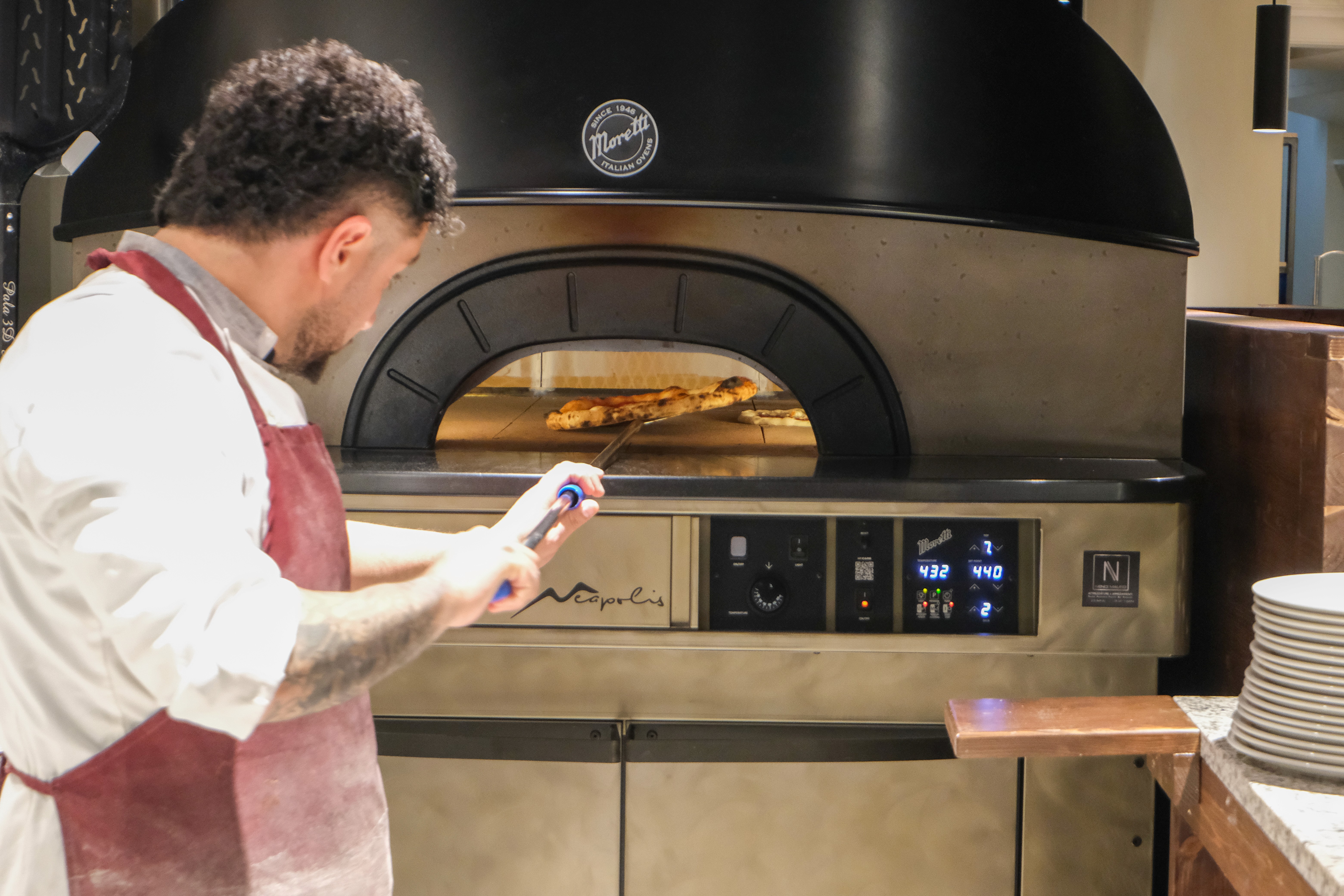 Our restaurant carries the honor of being a favorite Florentine destination for Queen Victoria. Our two master Pizzaiolos uphold this prestigious standard by pairing the classic 1889 recipe with the best tools in the industry. Using the Moretti, the Ferrari of stone ovens, they create an authentic Neapolitan experience that balances historic elegance with world-class culinary precision.